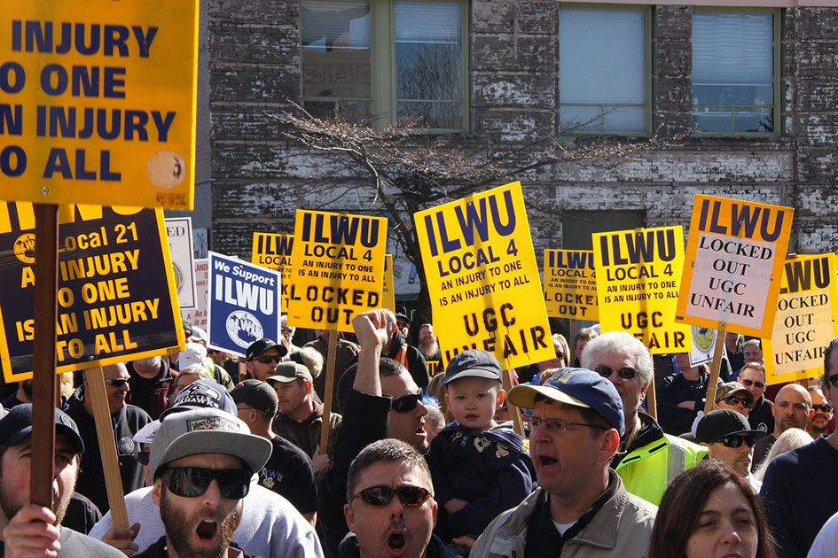 Είναι σημαντικό να πούμε, ότι αυτοί οι εργάτες δε βρέθηκαν πρώτη φορά μαζί για να διαδηλώσουν κατά του Τραμπ. Ανήκουν στη Διεθνή Ένωση Φορτοεκφορτωτών και Αποθηκάριων (ILWU), ένα από τα ισχυρότερα και πιο μαχητικά συνδικάτα που έχουν απομείνει στις Ηνωμένες Πολιτείες.