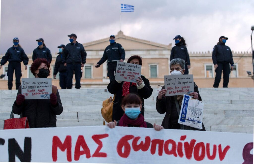 Τρία πανό κατά της πανδημίας από τη Συνέλευση 8 Μάρτη, Το Μωβ και τις Μαχητικές και Ελεύθερες στην πλατεία Συντάγματος ήταν αρκετά για να επισύρουν διοικητικά πρόστιμα στις εννέα συμμετέχουσες, την πολύωρη κράτηση τους και την μετατροπή των προσαγωγών τους σε συλλήψεις για παραβίαση του άρθρου 285 του Ποινικού Κώδικα. Φυσικά οι υγειονομικές αποστάσεις τις οποίες τήρησαν οι διωκόμενες αγωνίστριες δεν τηρήθηκαν όταν τις περικύκλωσαν για να τις συλλάβουν και δεν αναμένονταν να τηρηθούν στο βαν με το οποίο ήθελαν να τις μεταφέρουν. Βγήκες από το σπίτι σου για να διεκδικήσεις; Η εύστοχη αντίδραση των ίδιων των αγωνιστριών επέβαλε να μεταφερθούν σε ξεχωριστά βαν ανά τρεις. “Αν δεν συνωστιστείς μόνη σου θα σε συνωστίσουμε εμείς” φαίνεται να είναι το μότο της ΕΛΑΣ για την πανδημίας καταστολής που φέρει την υπογραφή του Χρυσοχοΐδη, αλλά δεν πέρασε.