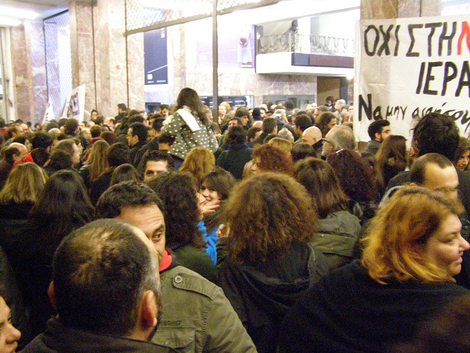 Είχε ήδη βγει κάλεσμα σε όλα τα social media για συγκέντρωση έξω από το Ρεξ, για να παίξουν οι ηθοποιοί την παράσταση ακόμα και στο δρόμο αν χρειαζόταν. Χίλια άτομα συγκεντρώθηκαν και γέμισαν την είσοδο και το πεζοδρόμιο του Ρεξ. Δεκάδες ηθοποιοί, μουσικοί, κινηματογραφιστές, συγγραφείς, καλλιτέχνες βρέθηκαν κοντά τους.