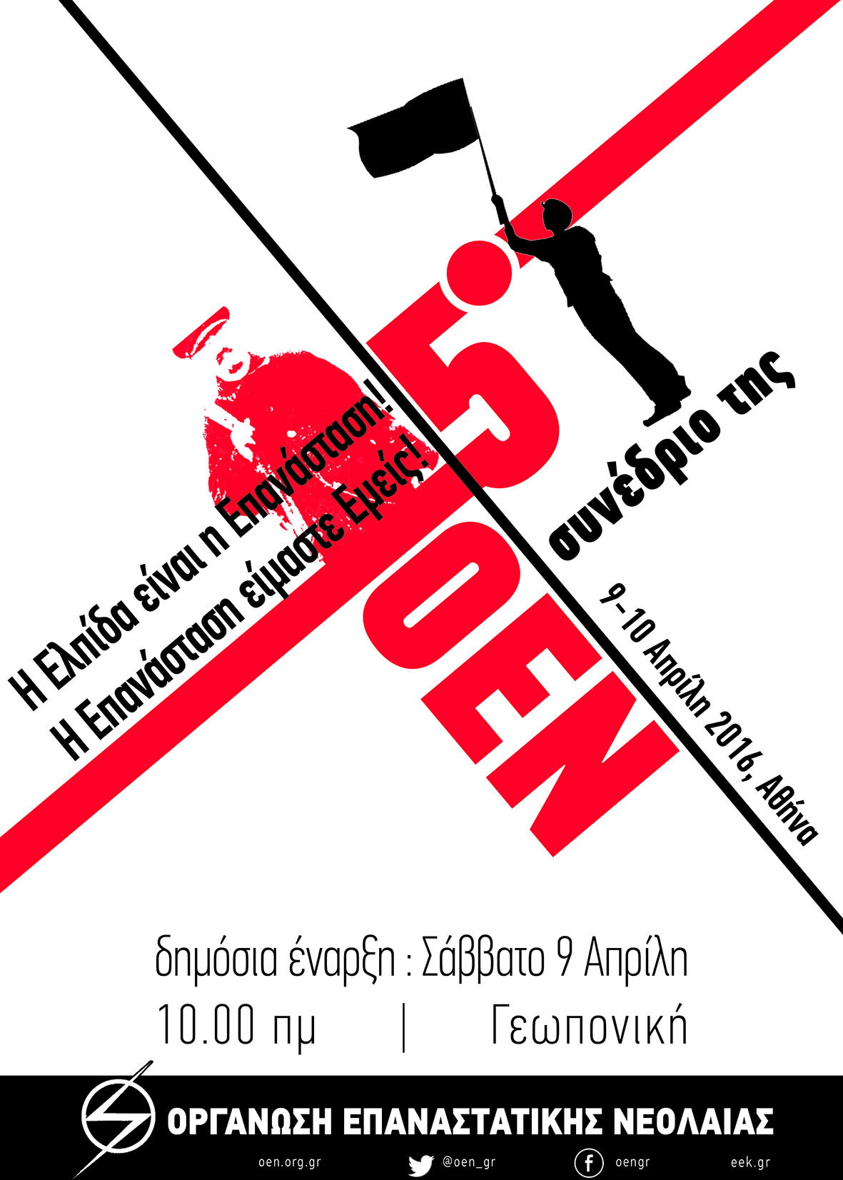 H Oργάνωση Eπαναστατικής Nεολαίας (OEN) οργανώνει το Σαββατοκύριακο 9 και 10 Aπριλίου το 5ο συνέδριό της στο Γεωπονικό Πανεπιστήμιο. Tο προσφυγικό βρίσκεται στο επίκεντρο της συζήτησης, όπως επίσης το ζήτημα της ανεργίας, ιδίως στη νεολαία, η καταστροφή της κοινωνικής ασφάλισης και το κράτος σε κατάσταση έκτακτης ανάγκης.