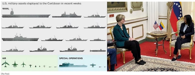 Για αρκετούς μήνες, το Πολεμικό Ναυτικό των Ηνωμένων Πολιτειών (USN), σε μια πράξη πολέμου, επέβαλε ναυτικό αποκλεισμό στις ακτές της Βενεζουέλας στην Καραϊβική Θάλασσα, εκφοβίζοντας τη χώρα μέσω επιθέσεων και δολοφονιών. Αυτό κορυφώθηκε στις 3 Ιανουαρίου σε μια στρατιωτική επιχείρηση που προκάλεσε εγκλήματα και καταστροφές, καθώς και στην απαγωγή τού προέδρου Μαδούρο και της συζύγου του.