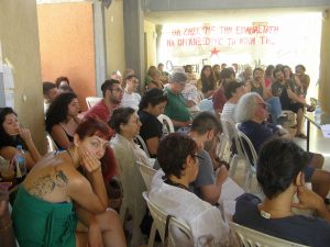 Την Δευτέρα 25 Ιούλη πραγματοποιήθηκε ανοιχτή συζήτηση για τις σεξιστικές και ρατσιστικές δολοφονίες στο Ορλάντο και το Ντάλας των ΗΠΑ, με εισήγηση της ΟΕΝ ενάντια σε κάθε μορφή καταπίεσης και για μια επαναστατική παρέμβαση στο LGBTQI+ κίνημα με τη συζήτηση να επεκτείνεται στην εκρηκτική πολιτική κατάσταση στις ΗΠΑ. Συγχρόνως είχαμε την ευκαιρία να απολαύσουμε εφτά μέρες μιας συλλογικά οργανωμένης ζωής, με τις αξέχαστες βραδιές χορού, ανάμεσα στις οποίες το γλέντι με τους απαγορευμένους στην Τουρκία κουρδικούς επαναστατικούς χορούς, τους αγώνες ποδοσφαίρου και την υπέροχη συλλογική κουζίνα.