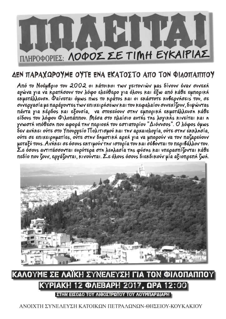 ΚΑΛΕΣΜΑ ΣΕ ΛΑΪΚΗ ΣΥΝΕΛΕΥΣΗ ΓΙΑ ΤΟΝ ΛΟΦΟ ΦΙΛΟΠΑΠΠΟΥ