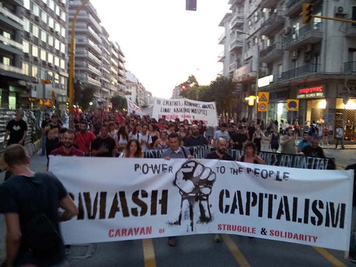 Πορεία ενάντια στο μνημόνιο και τα νέα μέτρα πραγματοποίησε την Τετάρτη 15/07 το Καραβάνι Αγώνα και Αλληλεγγύης στην Θεσσαλονίκη.