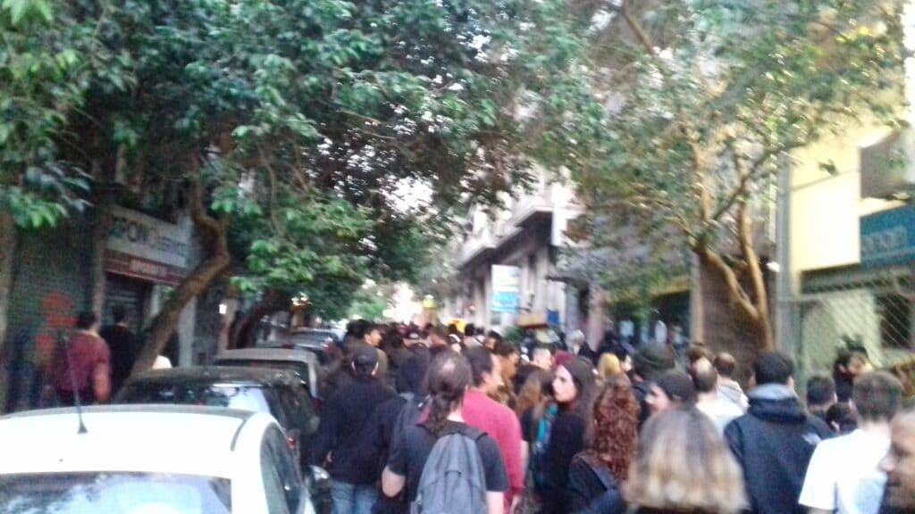 Πάνω από 3000 νέες/οι και εργαζόμενοι/ες, σήμερα Σάββατο 9/5, συγκεντρώθηκαν στην πλατεία του Αγίου Γεωργίου και διαδήλωσαν στους γύρω δρόμους της Κυψέλης, ενάντια στην χθεσινοβραδινή, μετά τα μεσάνυκτα, απρόκλητη αστυνομική επίθεση των ΜΑΤ και της ομάδας ΔΙΑΣ, κι ενάντια στην χυδαία διαστρέβλωση των γεγονότων από όλα τα κανάλια, στις ειδήσεις τους, όλη μέρα, σήμερα.