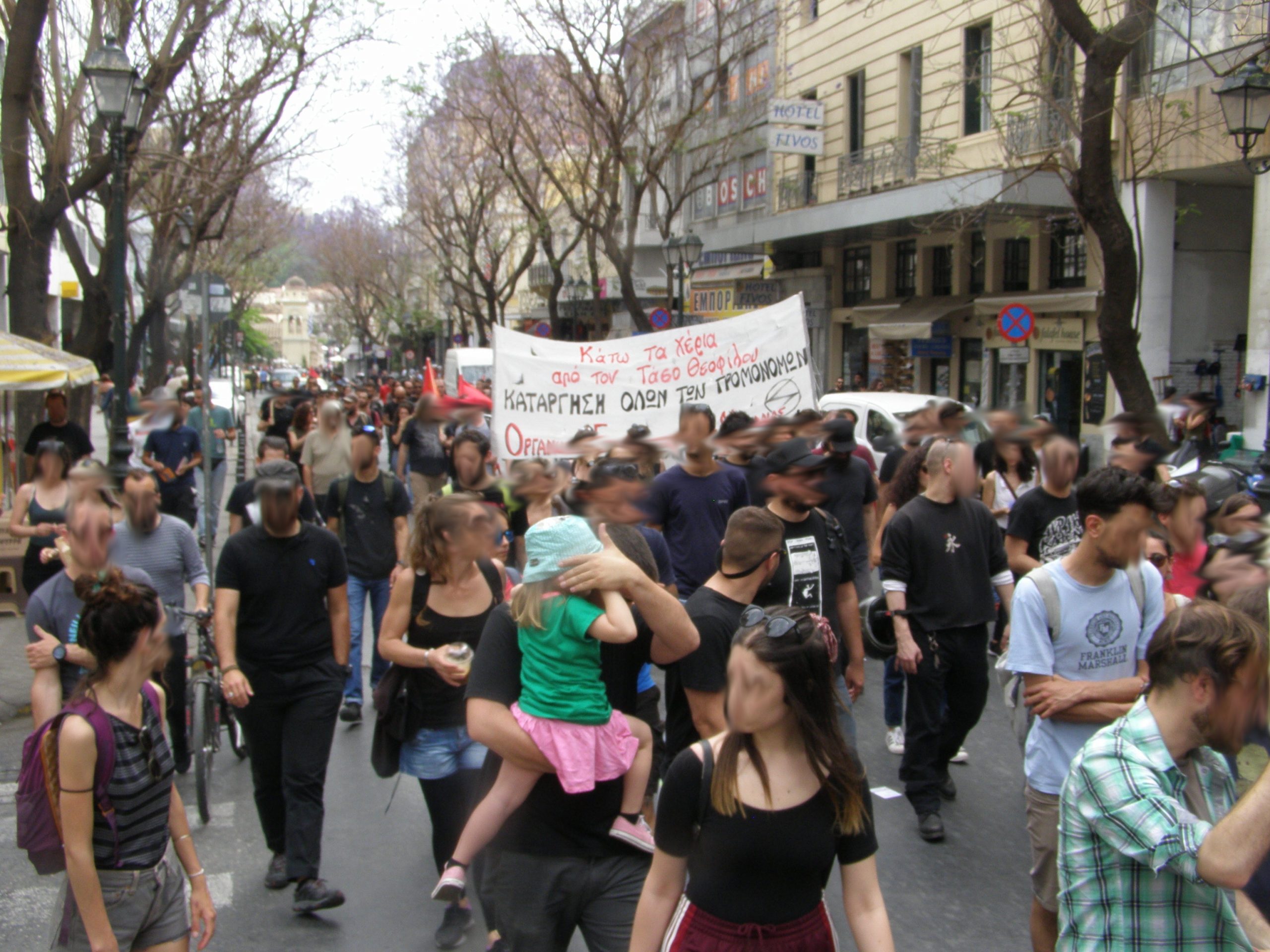 Πάνω από 1.500 άτομα συμμετείχαν στη συγκέντρωση έξω από το σταθμό του Θησείου και στην πορεία στο κέντρο της Αθήνας το μεσημέρι του Σαββάτου 5 Μάη.
