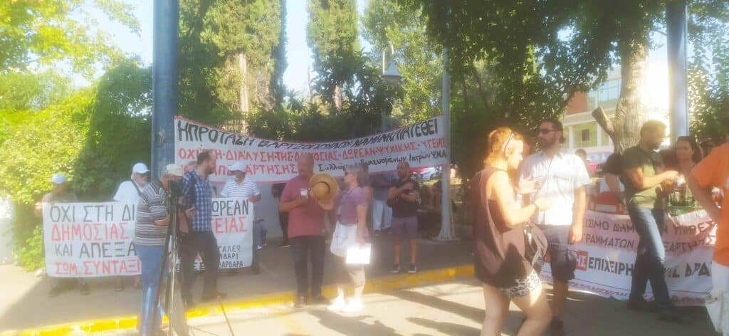 Μεγάλη συμμετοχή είχε η συγκέντρωση διαμαρτυρίας στο Ψυχιατρικό Νοσοκομείο Αττικής την Παρασκευή 12 Ιουλίου μετά από κάλεσμα του Συλλόγου Εργαζομένων του Νοσοκομείου.