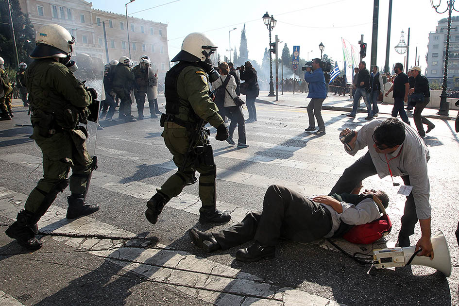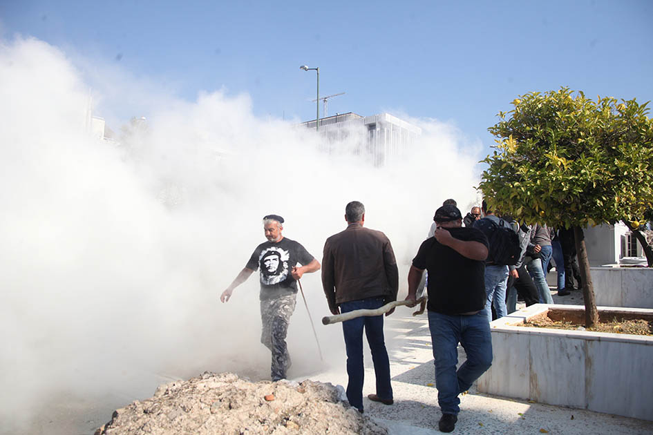 Με την ολοκλήρωση των ομιλιών στην πλατεία συντάγματος, οι αγρότες πορεύτηκαν προς τη Βουλή. Πλήθος αγροτών είχε φτάσει μέχρι το μνημείου του Άγνωστου στρατιώτη. Με αφορμή μερικά νεράντζια δέχτηκαν χημικά και δακρυγόνα ενώ στη συνέχεια ανέβηκαν με πορεία προς την είσοδο της Βουλής. Η αστυνομία έκανε δυο προσαγωγές αγροτών. Η προκλητική στάση της αστυνομίας εξαγρίωσε και τους πιο συγκρατημένους αγρότες που ήθελαν εξαρχής η διαδήλωση να είναι ειρηνική με αποτέλεσμα να φωνάζουν από τις ντουντούκες “ δεν τους φοβόμαστε είμαστε ένα ποτάμι που θα τους πνίξει”. Τα νεράντζια αντικαταστάθηκαν γρήγορα από τις πέτρες. Αγρότες 50 και 60 χρονών με τις παραδοσιακές “γκλίτσες” τους όρμησαν στα ΜΑΤ. Οι συμπλοκές κράτησαν αρκετή ώρα και η αστυνομία αναγκάστηκε να αφήσει τους δυο αγρότες ελεύθερους.