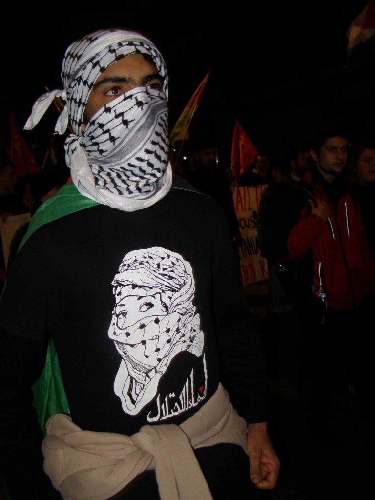 “Λευτεριά στην Παλαιστίνη”, “οι λαοί νικούν με το όπλο στο χέρι κι αυτό η Παλαιστίνη πολύ καλά το ξέρει”, “Free Gaza”, “Free Palestine”, ενάντια στο ισραηλινό κράτος και τις φασιστικές του μεθόδους και ενάντια στην κυβέρνηση Μητσοτάκη, ήταν συνθήματα που φωνάζονταν με ενθουσιασμό. Δύναμη των ΜΑΤ ακολουθούσε την πορεία χωρίς να επέμβουν.(Το κειμενάκι αυτό και οι φωτο, και γενικότερα η συμμετοχή των συντρόφων του ΕΕΚ στη διαδήλωση, αφιερώνονται στη συντρόφισσα Μαργαρίτα, που ζει το δράμα του αδόκητου χαμού του αγαπημένου της/μας γιου, του Γιάννη, και δεν μπόρεσε να είναι παρούσα όπως πάντα.)