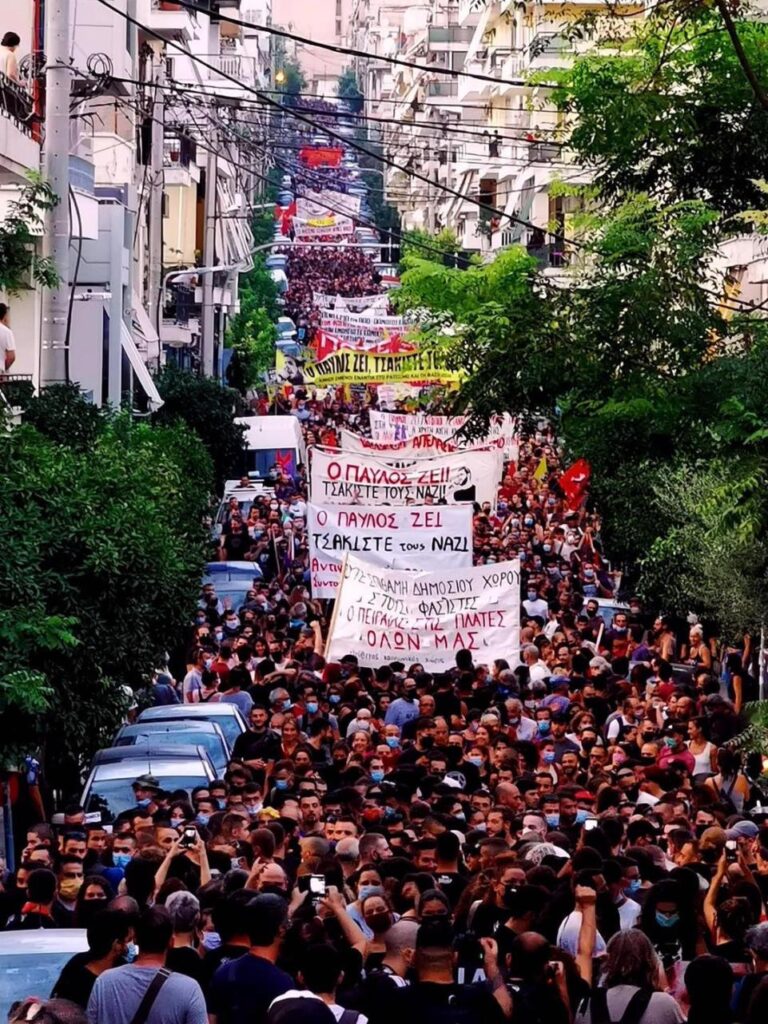 Παρασκευή 18 Σεπτέμβρη. Ημέρα θλίψης για τον Παύλο, ημέρα οργής για το φασισμό και τους φασίστες. Χιλιάδες άνθρωποι, με τη νεολαία να δίνει τον τόνο, διαδήλωσαν από την οδό Παύλου Φύσσα στο Κερατσίνι μέχρι τον Πειραιά. Παρότι η προετοιμασία δεν ήταν όπως τα προηγούμενα χρόνια, και λόγω κορονοϊού και λόγω… Ιανού, η φετινή διαδήλωση ήταν τεράστια, με χιλιάδες κόσμο, σχεδόν ισάξια με την περσινή.