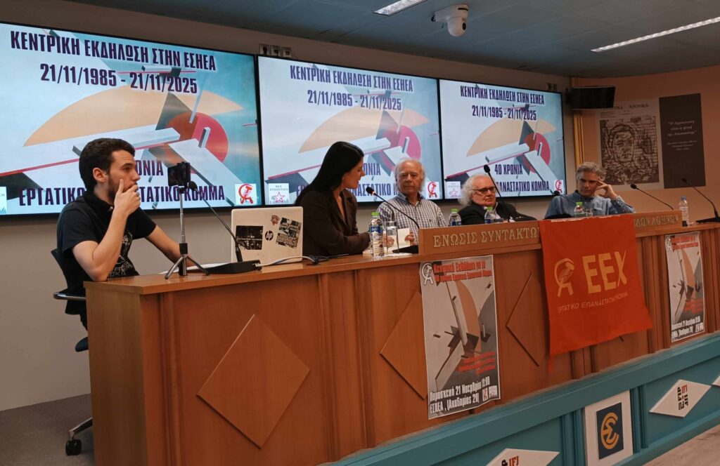 Στην πετυχημένη εκδήλωση στην επέτειο των 40 χρόνων από την ίδρυση του Εργατικού Επαναστατικού Κόμματος (ΕΣΗΕΑ, Παρασκευή 21 Νοεμβρίου), αδελφές οργανώσεις από διάφορα μήκη και πλάτη του κόσμου έστειλαν χαιρετιστήρια μηνύματα. Όπως έχουμε σημειώσει σε ένα σύντομο φωτο-ρεπορτάζ στη neaprooptiki.gr, ζωντανούς χαιρετισμούς έδωσαν σύντροφοι από την μαχόμενη, αντιστεκόμενη και σφαγιαζόμενη από τον σιωνισμό και τον ιμπεριαλισμό Παλαιστίνη και σύντροφος από την επαναστατική Μπουρκίνα Φάσσο.