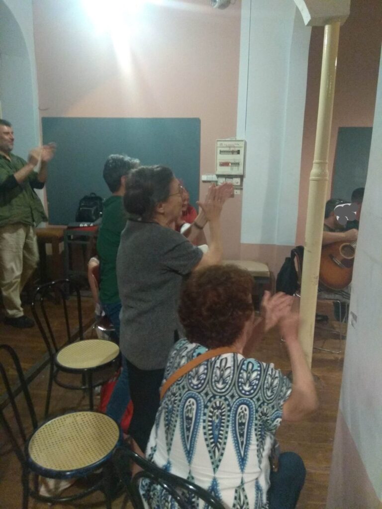 Στο τέλος της βραδιάς η Ομάδα Μουσικής της Κοινωνικής Επανένταξης του 18 ΑΝΩ, μέλη της οποίας είναι θεραπευόμενοι που βρίσκονται στο τρίτο και τελευταίο στάδιο της θεραπείας απεξάρτησης, μας χάρισαν έξι ολοφρεσκα, καταπληκτικά, δικά τους τραγούδια και μια υπέροχη διασκευή. Την ωραία αυτή εκδήλωση που δεν είχε κανένα επετειακό χαρακτήρα πλαισίωσε η αλληλέγγυα «κουζίνα el shef» που μας πρόσφερε πολύ νόστιμο φαγητό. Η συλλογικότητα «κουζίνα Ελ Σεφ», δρα στα πλαίσια της Κοινωνικής Αλληλεγγύης και προσφέρει φαγητό όχι μόνο στους πρόσφυγες, αλλά και σε όσους το έχουν ανάγκη επιτελώντας ένα σπουδαίο έργο σε τέτοιους δύσκολους καιρούς.