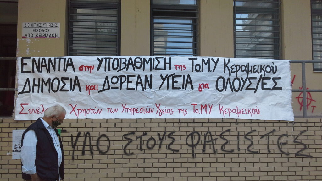 Η Συνέλευση Χρηστών υπηρεσιών Υγείας της ΤΟΜΥ Κεραμεικού, που δημιουργήθηκε μετά το πρώτο λοκντάουν, έχει πραγματοποιήσει από τις αρχές του καλοκαιριού, μια παρέμβαση μπροστά από την Γ’ Δημοτική Κοινότητα την ώρα της συνεδρίασής της, την Τετάρτη 10/6/20, μία συγκέντρωση μπροστά από το κτίριο και πορεία στους δρόμους των Κάτω Πετραλώνων την Τρίτη 30/6/20. Έχει μαζέψει υπογραφές και έκανε παρέμβαση στις 15/9/20 στην 1η Υγειονομική Περιφέρεια Αττικής όπου απαίτησε από την Υποδιοικήτρια να γίνουν άμεσα προσλήψεις και στις δύο υγειονομικές δομές. Εκείνη μας πληροφόρησε ότι στο Κέντρο Υγείας θα φτιαχτεί μονάδα Covid-19, αλλά διερωτώμεθα με ποιά υλικοτεχνική υποδομή και πιο ιατρικό προσωπικό, αφού προσλήψεις δεν γίνονται και απεναντίας έχουν χρησιμοποιηθεί εν μέσω κορωνοϊού οι γιατροί των δύο δομών για “να κλείνουν τρύπες” στα δημόσια νοσοκομεία.