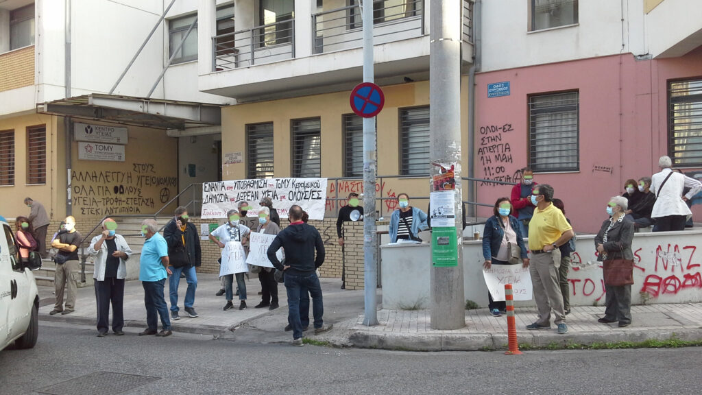 Την Δευτέρα 26 Οκτωβρίου 2020 καλέστηκε από την “Συνέλευση Χρηστών των υπηρεσιών υγείας της ΤΟΜΥ Κεραμεικού” συγκέντρωση–παρέμβαση μπροστά από το κτίριο του πρώην ΙΚΑ και τώρα ΕΦΚΑ, Κειριαδών 4 και Ευρυσθέως 1 στα Κάτω Πετράλωνα, όπου και συστεγάζονται η Τοπική Μονάδα Υγείας (ΤΟΜΥ) και το Κέντρο Υγείας Κεραμεικού. Επίσης, στήριξε με δικό της κάλεσμα και καμπάνια για την συγκέντρωση η “Ανοιχτή Συνέλευση Κατοίκων Πετραλώνων-Θησείου-Κουκακίου”. Στη συγκέντρωση–παρέμβαση της 26/10/20 μπροστά από τις δομές υγείας, έδωσαν το παρών πολλοί/ες κάτοικοι από τις γύρω περιοχές εργαζόμενες/οι, συνταξιούχοι/ες, άνεργοι/ες.