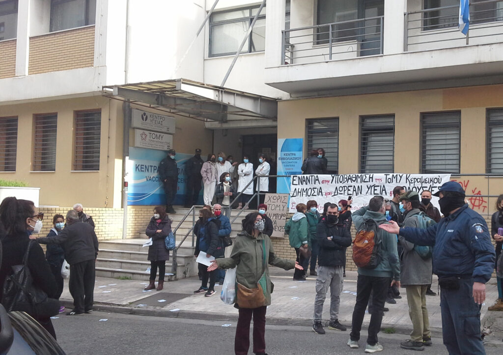 Την Παρασκευή 5 Φλεβάρη 2021 η “Συνέλευση χρηστών υπηρεσιών Υγείας ΤΟΜΥ Κεραμεικού” είχε καλέσει συγκέντρωση έξω από το κτίριο του Κέντρου Υγείας Κεραμεικού με αφορμή την ανακοίνωση του Υπουργείου Υγείας για διάλυσή του και τη μετατροπή του σε Εμβολιαστικό Κέντρο από την Δευτέρα 8/2/21.