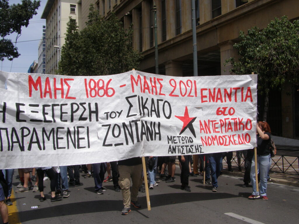 Η ιστορία, στους κύκλους και στις περιστροφές της, που ασφαλώς ποτέ δεν είναι κύκλοι, ίσως είναι σπείρα, το έφερε έτσι ώστε 135 χρόνια μετά το Σικάγο, στην αιχμή των αιτημάτων του εργατικού κινήματος στην Ελλάδα να βρίσκεται ξανά το ζήτημα του 8ώρου. Καθώς η ακροδεξιά εκφυλισμένη κυβέρνηση των Φουρφιώτηδων και των Λιγνάδηδων επιχειρεί να προσφέρει ένα δώρο στο Σύνδεσμο των Ελληνικών Βιομηχανιών – την κεφαλή του εργάσιμου 8ώρου επί πίνακι, αλλά και απαγορεύσεις στην κήρυξη και υπεράσπιση των απεργιών- η εργατική τάξη είναι υποχρεωμένη να υπερασπίσει ιστορικές κατακτήσεις ενός και πλέον αιώνα. Αρνούμενη το «ευέλικτο» 10ωρο και τις άλλες αντιδραστικές ρυθμίσεις του υπουργού της Δεξιάς Χατζηδάκη, η εργατική τάξη δίνει και θα δώσει σκληρούς αγώνες για την υπεράσπιση της 8ωρης εργάσιμης ημέρας – που σήμερα, με την επιστημονικο-τεχνολογική επανάσταση θάπρεπε να είναι 6ωρο και τετραήμερο.