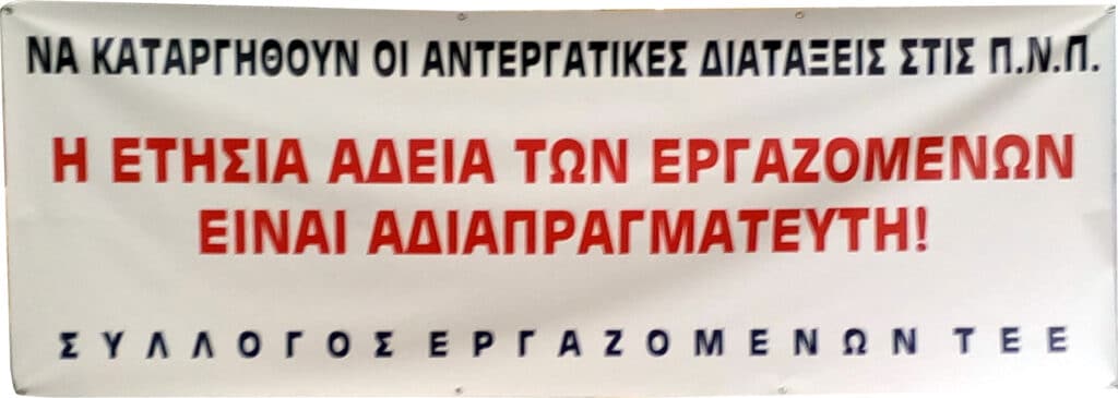 · Να ακυρωθούν αναδρομικά οι αντικοινωνικές και αντεργατικές διατάξεις των Π.Ν.Π. (ΦΕΚ A_55_11-3-2020, άρθρο 5) που στερούν τους εργαζόμενους γονείς από την κανονική ετήσια άδειά τους. Να μη στερείτε καμιά εργατική οικογένεια την άδεια αναψυχής.