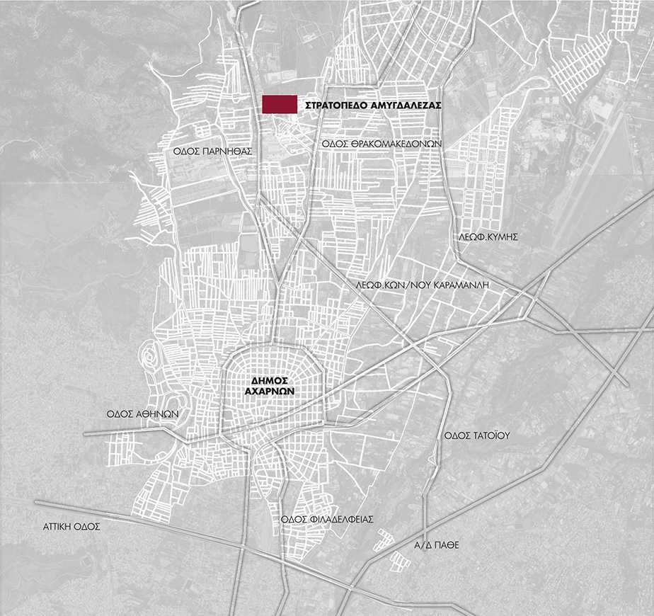 Αν η χωροθέτηση των στρατοπέδων εξεταστεί σε σχέση με την πόλη, προκύπτουν ορισμένα ιδιαίτερα κρίσιμα συμπεράσματα. Στην περίπτωση της σχέσης Αμυγδαλέζας και μητροπολιτικού κέντρου της Αθήνας πολλαπλές συνθήκες ορίου συγκροτούν αυτή τη σχέση, σπρώχνοντας στο αθέατο, “εκεί που το μάτι δε φτάνει” τις υπάρξεις των μεταναστών. Μετά από μια επιχείρηση σκούπα κανείς δεν μπορεί να τους δει. Μη προσβάσιμος και αποκλεισμένος από το βλέμμα, ο μη-τόπος της Αμυγδαλέζας γίνεται το μάτι που επιτηρεί την τάξη και την ασφάλεια στο κέντρο της μητρόπολης.
