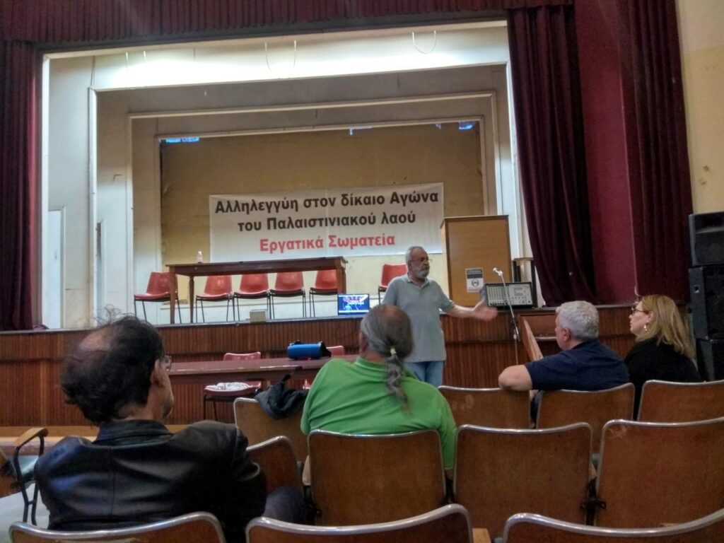 Σημαντικό βήμα στην κατεύθυνση οργάνωσης της αλληλεγγύης στον παλαιστινιακό λαό αποτέλεσε η πρωτοβουλία 6 Σωματείων του ιδιωτικού και δημόσιου τομέα που πραγματοποιήθηκε το απόγευμα της Πέμπτης 13/9 στο Εργατικό Κέντρο Πειραιά.