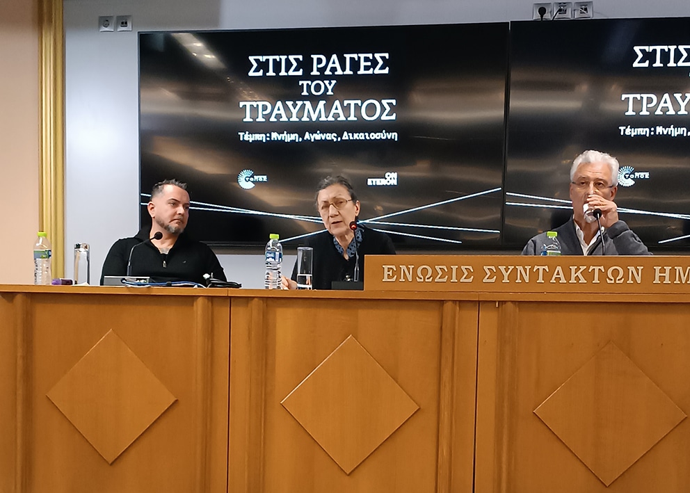Mε αφορμή την συμπλήρωση των 3 χρόνων από το έγκλημα των Τεμπών (το Σάββατο 28/2/26), την Τρίτη 24 Φεβρουαρίου στη κατάμεστη αίθουσα της ΕΣΗΕΑ έγινε η παρουσίαση ενός συλλογικού βιβλίου για τα Τέμπη με τίτλο “ΣΤΙΣ ΡΑΓΕΣ ΤΟΥ ΤΡΑΥΜΑΤΟΣ Τέμπη: Μνήμη, Αγώνας, Δικαιοσύνη” από τις εκδόσεις ΤΟΠΟΣ σε συνεργασία με το Eteron – Ινστιτούτο για την Έρευνα και την Κοινωνική Αλλαγή.
