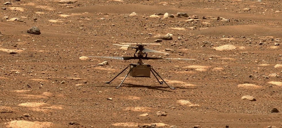 Το δεύτερο εντυπωσιακό πείραμα που εκτελέστηκε στον αέρα του Άρη ήταν το πέταγμα ενός μικρού ελικόπτερου, ενός drone, βάρους (στη Γη) γύρω στα 1,8 κιλά. Την Δευτέρα 19 Απριλίου για πρώτη φορά, την Πέμπτη 22 Απριλίου για δεύτερη φορά και την Κυριακή 25 Απριλίου για Τρίτη φορά, το μικρό ελικόπτερο Ingenuity (Ευφυΐα) της NASA αιωρήθηκε πάνω από το Άρη, πάνω από τον κρατήρα Jezero, σε μικρό ύψος, 3 έως 5 μέτρων για 39,1 δευτερόλεπτα. Αν το όνειρο του ήρωα της ελληνικής μυθολογίας Δαίδαλου είχε τραγικό αποτέλεσμα, και το πρώτο πετυχημένο πέταγμα πάνω από τη Γη έγινε πριν 117 χρόνια από τους αδελφούς Ράιτ, το πέταγμα στον ουρανό του Άρη έγινε με επιτυχία τον Απρίλιο του 2021. Ένα ιστορικό πέταγμα, μια πτήση ελεγχόμενη από απόσταση 278 εκατομμυρίων χιλιομέτρων. Προς τιμή των αδελφών Ράιτ το πεδίο στο οποίο έγινε η δοκιμαστική πρώτη πτήση στον Άρη ονομάζεται Πεδίο Αδελφών Ράιτ…