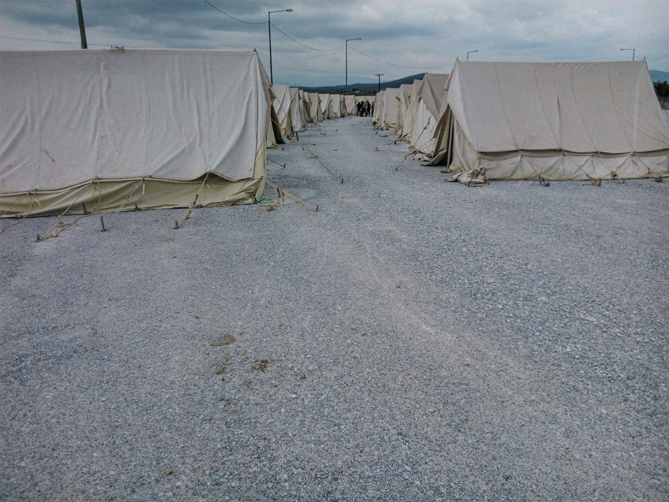 Έτσι, οι ξεριζωμένοι αυτοί άνθρωποι αφήνονται στο έλεος, κυριολεκτικά στοιβάζονται σε στρατιωτικές σκηνές και κοιμούνται πάνω σε χαρτόνια, χωρίς πόσιμο νερό, χωρίς ρεύμα, και φυσικά χωρίς καμία πρόσβαση στον κόσμο έξω από τον καταυλισμό μιας και δεν γνωρίζουν ούτε πού βρίσκονται ούτε προς τα πού πέφτει ο «πολιτισμός». Το κράτος σε κατάσταση έκτακτης ανάγκης μεριμνά για τη σίτισή τους και την πρόχειρη στέγασή τους κι αυτό -κατ’ αυτούς- είναι αρκετό. Ανθρωπιστική βοήθεια δίνεται με όρους φιλανθρωπίας. Κι αυτές οι «παροχές» ως ένα βαθμό και ως πρώτο στάδιο μέχρι να παρέλθει ο ένας μήνας περιθώριο που δίνεται από την καταγραφή αυτών των ανθρώπων με το που πατήσουν το πόδι τους στη χώρα.