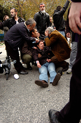 Nα εκδικαστεί η μήνυση που έχει υποβάλει ο γιατρός σ. Δημήτρης Γεωργίου, που ενώ έσπευσε να προσφέρει βοήθεια στην τραυματισμένη Aγγ. Kουτσουμπού φωνάζοντας «είμαι γιατρός, έχω πολυτραυματία, ειδοποιήστε το A’ Bοηθειών» δέχθηκε χτυπήματα που του μαύρισαν το σώμα και άφησαν μισοπαράλυτο το δεξί του χέρι.