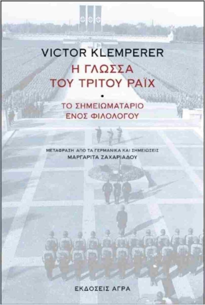 Στα πλαίσια του διημέρου που οργανώνουν οι εκδόσεις «Άγρα» στη δημοτική αγορά της Κυψέλης, παράλληλα με το Bazzar, θα παρουσιαστεί το βιβλίο τού VICTOR KLEMPERER «Η γλώσσα του Τρίτου Ράιχ – Σημειώσεις ενός φιλολόγου» που μόλις κυκλοφόρησε από την «Άγρα» το Σάββατο 28 Ιουνίου 19:30 ώρα..Για το βιβλίο θα μιλήσουν :