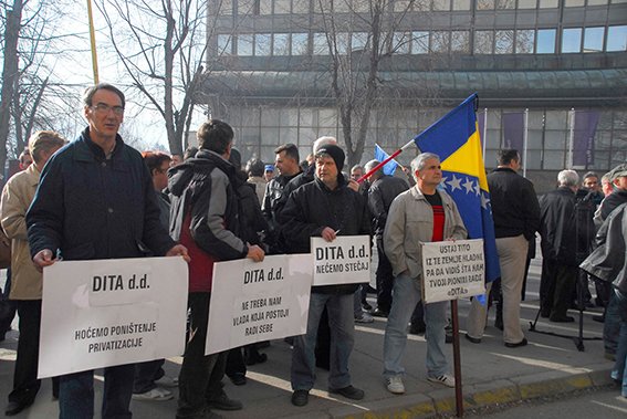Εμείς, οι εργάτες του εργοστασίου καθαριστικών DITA με έδρα την Τούζλα, αντιπαλεύουμε ένα κύμα διεφθαρμένων ιδιωτικοποιήσεων, εκμετάλλευσης και υπεξαίρεσης περουσιακών στοιχείων εργοστασίων, που καταστρέφει την βιομηχανία της Βοσνίας-Ερζεγοβίνης.